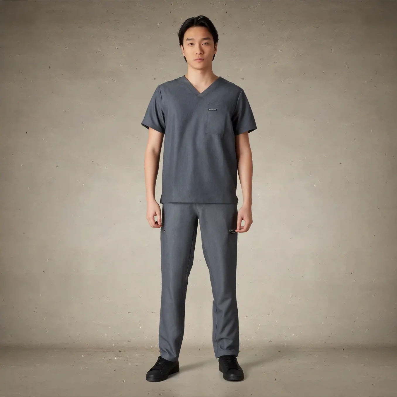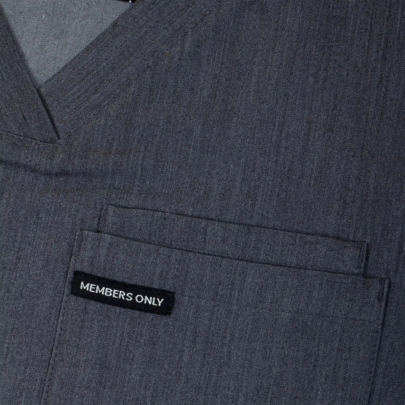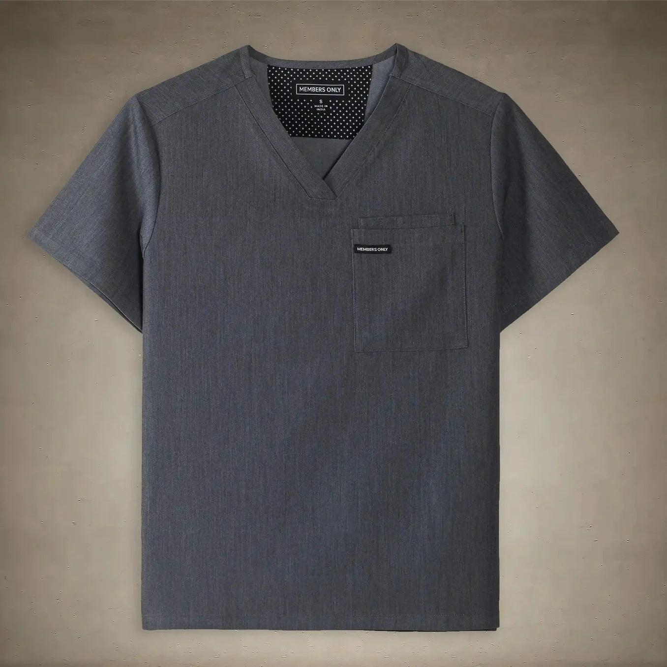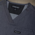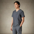 - Utilitarian design with modern fit featuring a V-neck design, slide slit hem, and 3 pockets.