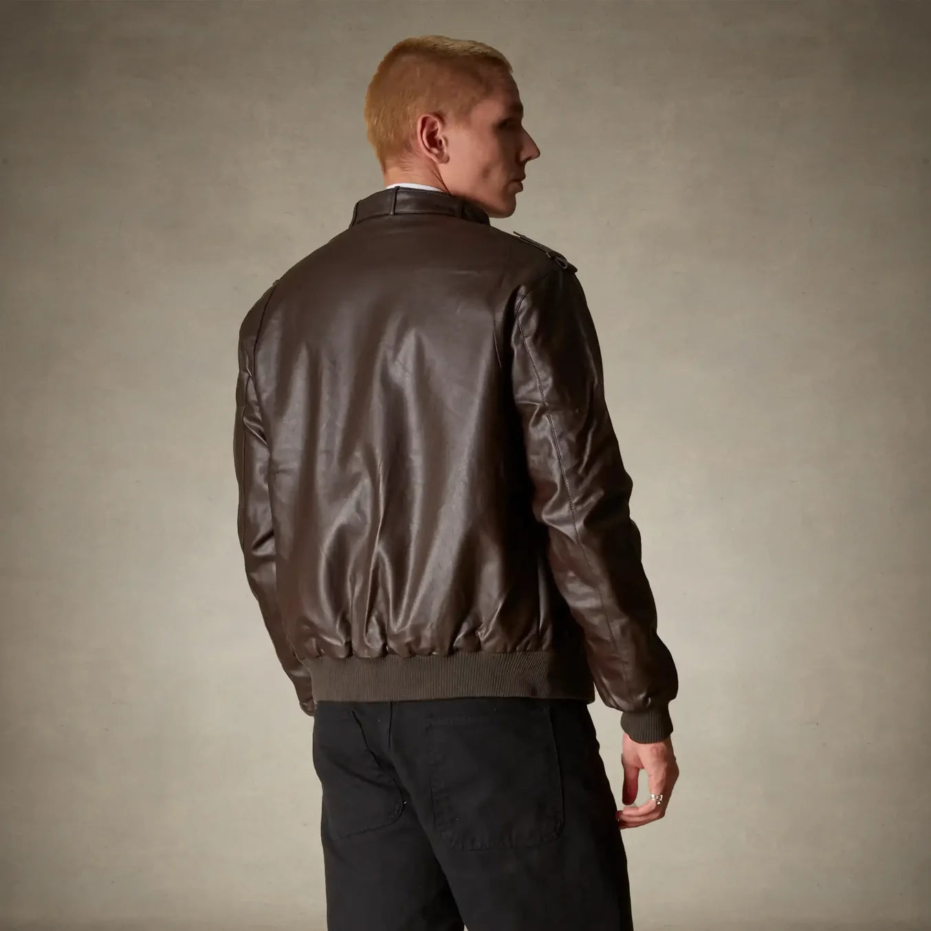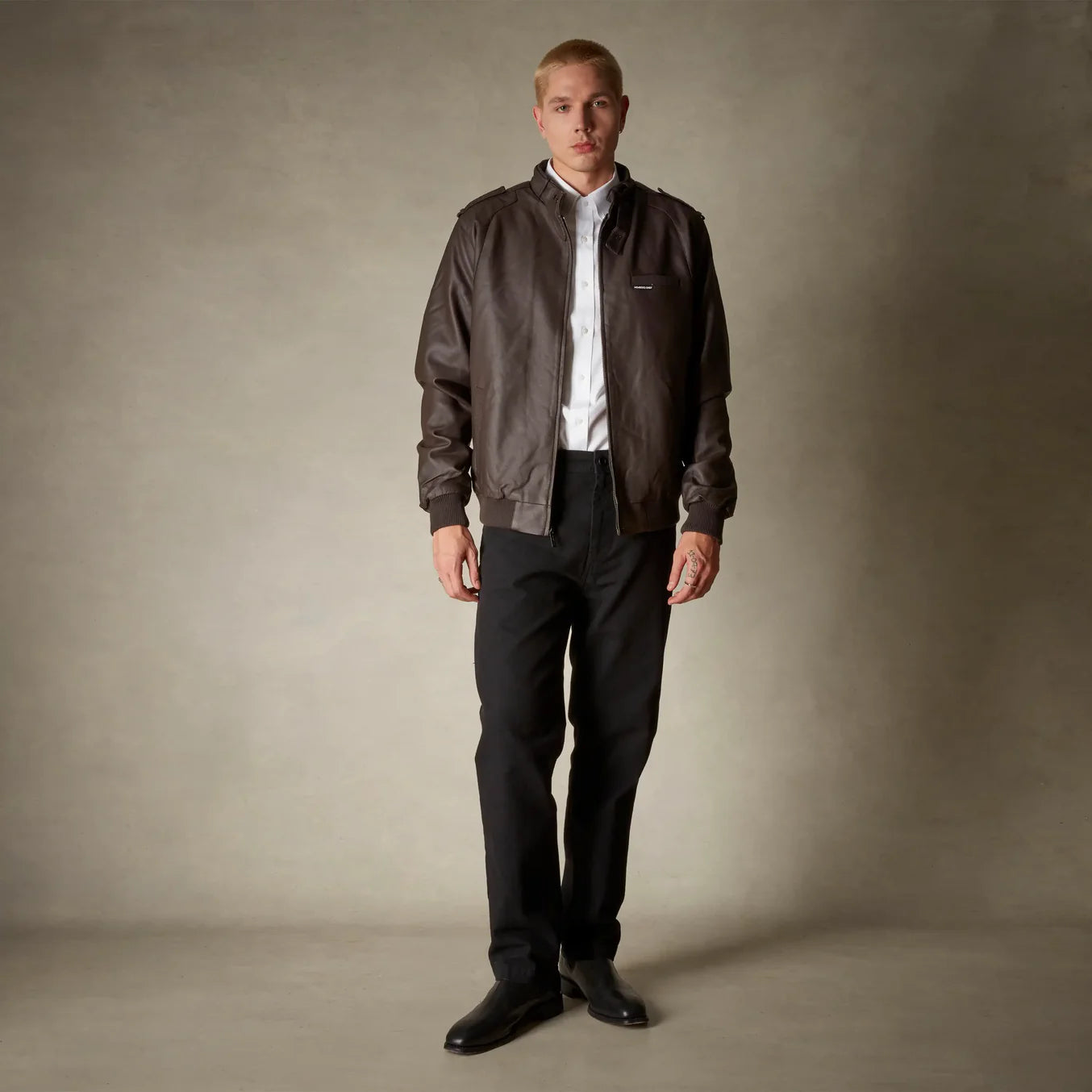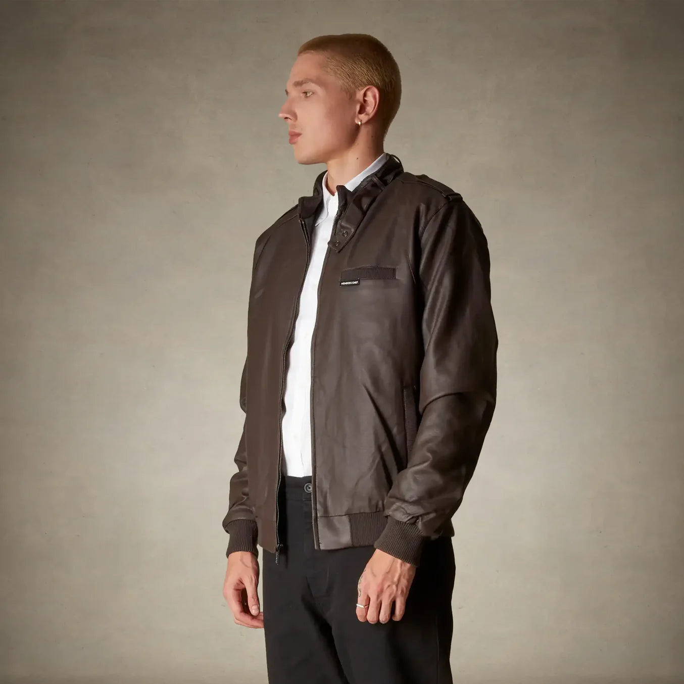 Members Only Classic Faux Leather Iconic Jacket. Soft Fabric shell, Diamond Quilt Inside with Lightweight Poly Fill for added Warmth. Iconic throat latch and shoulder epaulettes, and zip front.