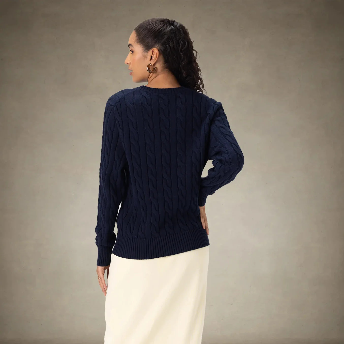 This women’s cable knit sweater is made from 100% high-quality cotton and features a comfortable, easy fit. The classic crewneck and detailed cable knit design give it a timeless and stylish look.